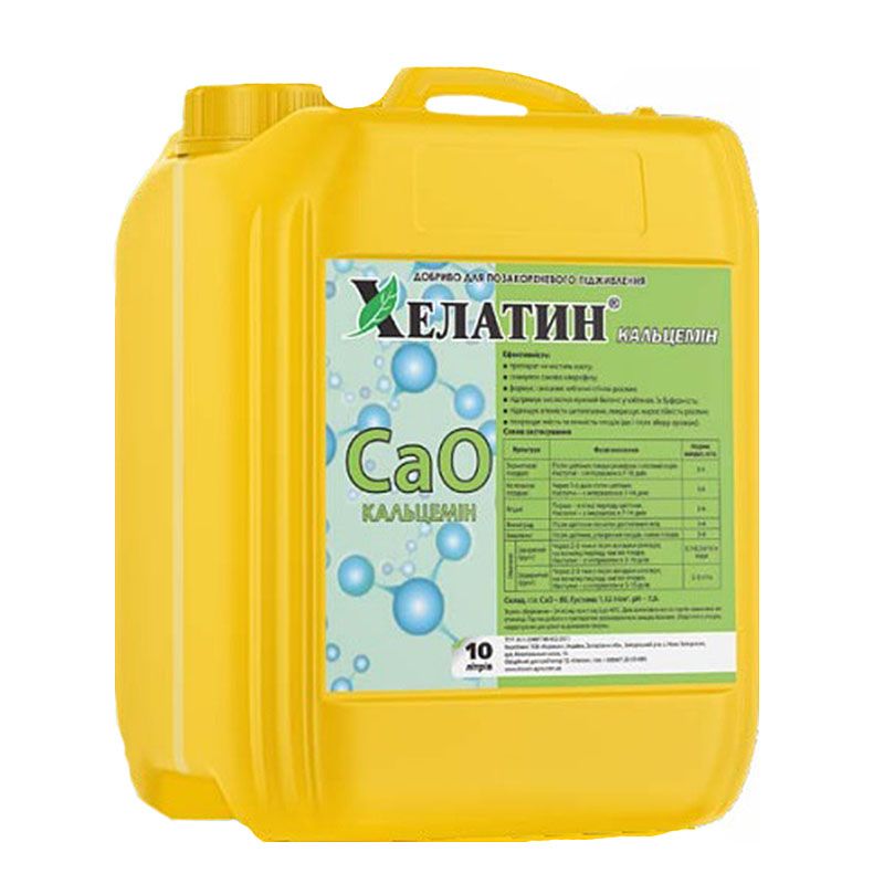 Добриво Хелатин Кальцемін – це добриво з високим вмістом кальцію, що не містить в своєму складі азоту. Застосування препарату дозволяє значно покращити характеристики лежкості продукції. Особливо ефективним є використання даного продукту при вирощуванні для подальшого зберігання плодових, овочевих та ягідних культур.