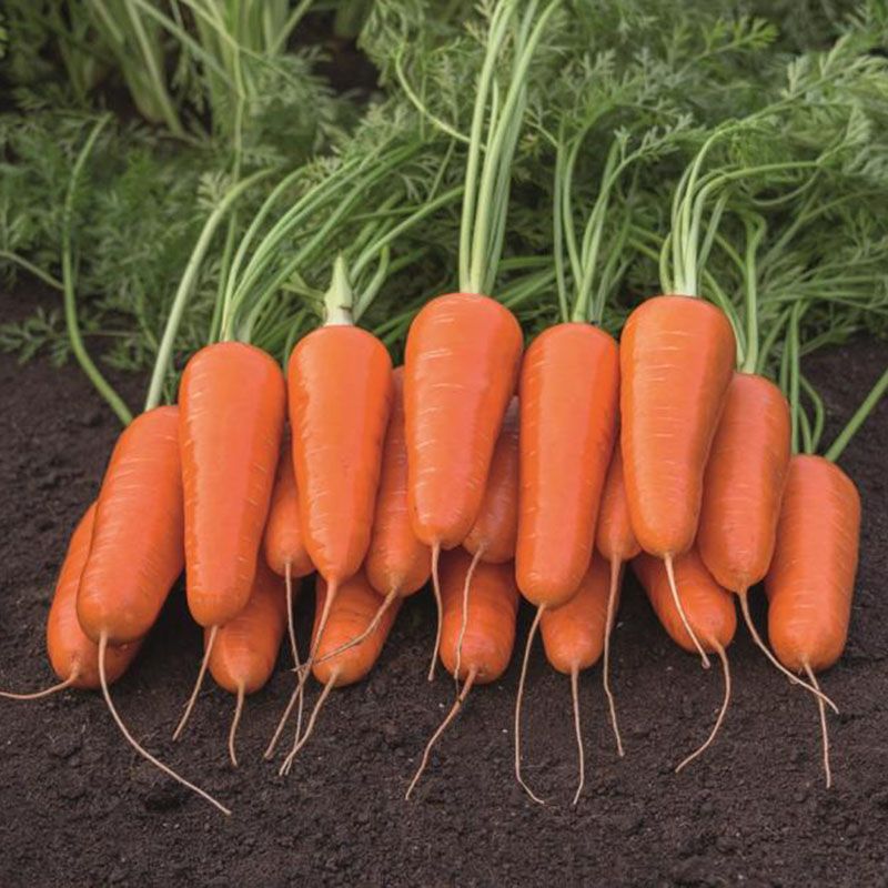 Характеристика плодів – Гібрид із конічним, вирівняним коренеплодом середньої довжини, темно-оранжевого кольору. Brix – 9,2%. Вага – 100-200 г.