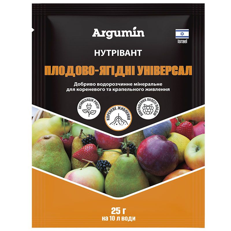 Добриво Нутрівант Плодово-ягідні універсал завдяки своєму збалансованому складу макро- та мікроелементів легко засвоюється рослинами та відповідає фізіологічним потребам плодово-ягідних культур. Застосування добрива сприяє росту плодів, покращує смакові властивості та лежкість плодів. При систематичному використанні сприяє збільшення врожайності на 15-20%.