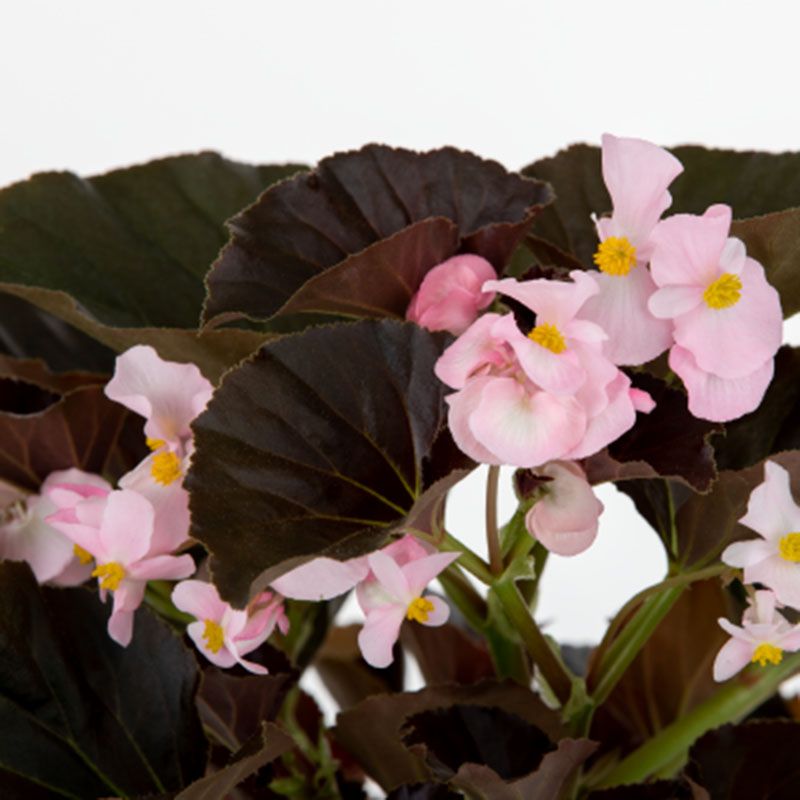 Бегонія Стоунхендж F1 світло-рожева, бронзовий лист (Begonia interspecific Stonehedge F1 Light Pink Bronze Leaf) – рослина, яка відрізняється привабливим бронзовим листям.