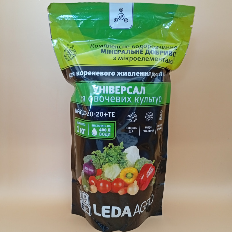 Добриво Універсал NPK 20-20-20 водорозчинне – комплексне водорозчинне мінеральне добриво для овочевих культур.