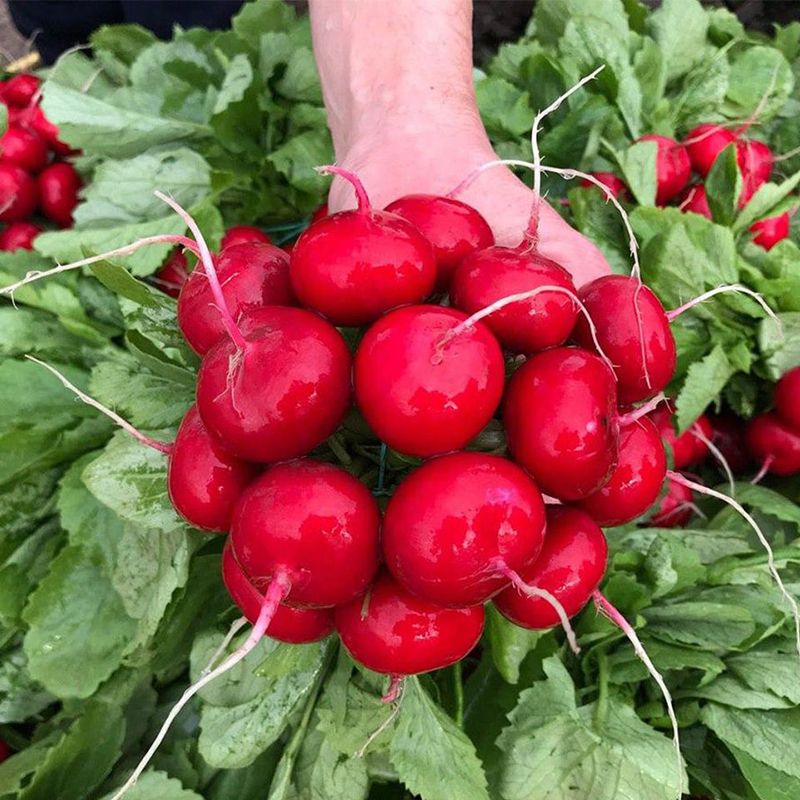 Особливості рослини – Добре показує себе навіть в умовах недостатнього освітлення і низьких температур. Листовий апарат насиченого зеленого кольору, відмінно прикріплений до редису.