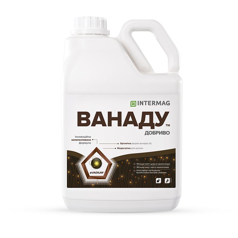 Добриво Ванаду рекомендується використовувати для вирощування коренеплодів. В результаті досліджень, проведених INTERMAG, була розроблена та запатентована молекула aVadium, що робить ванадій біодоступною органічною сполукою, і є основною причиною високої ефективності стимулятора Ванаду.