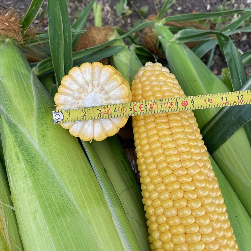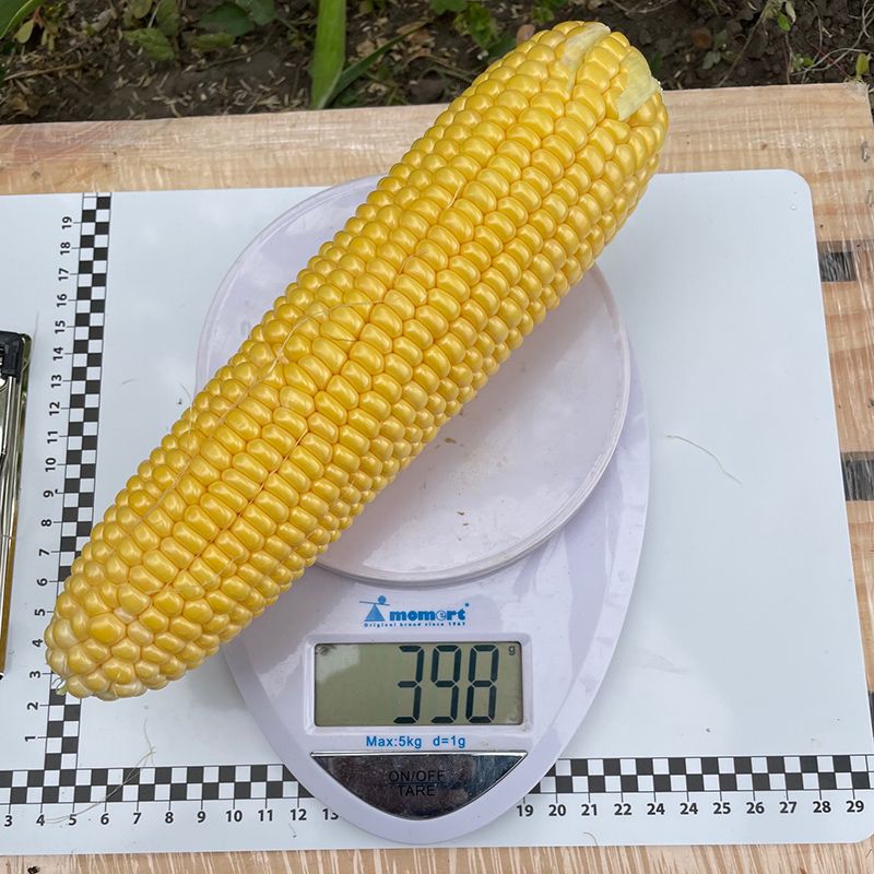 Характеристика плода – Кочани формуються закриті, жовтого кольору, довжиною 25-27 см, діаметром 5,3 см, зерно високе – 11 мм. Високі смакові якості.