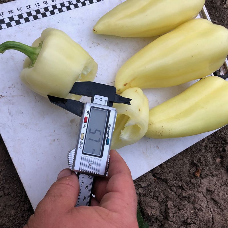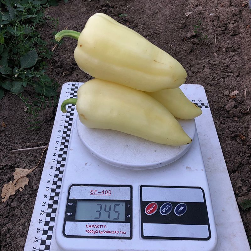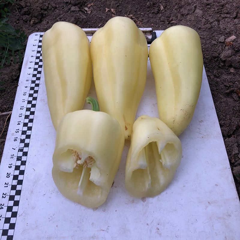 Характеристика плода – Плоди конічної форми. Товщина стінки плода – 6 мм. Довжина – 14 см, діаметр – 7 см. У технічній стиглості мають білий колір, у біологічній стиглості – жовтий. Вага плоду – 130-160 г.