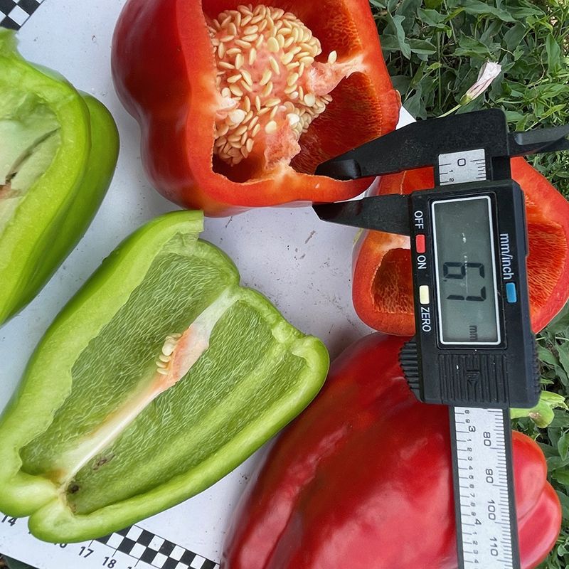 Характеристика плода – Плоди подовжено-кубоподібної форми. Товщина стінки плода – 7-9 мм. Довжина – 16 см, діаметр – 9 см. У технічній стиглості мають зелений колір, у біологічній стиглості – червоний. Вага плоду – 180-200 г.