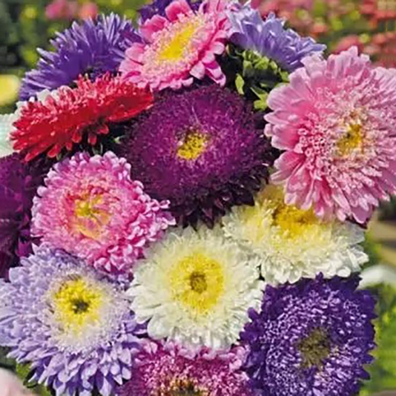 Айстра Принцеса суміш (mix) – однорічна рослина з ефектними барвистими суцвіттями, наповненими великими трубчастими квітками.