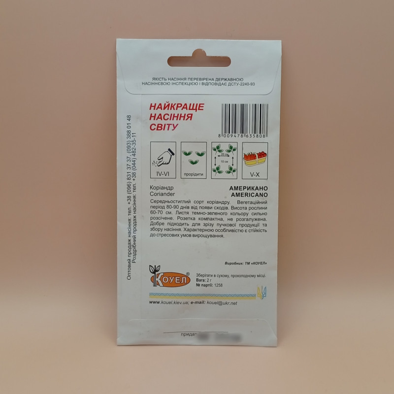 Американо - сорт коріандру. Від сходів до сбору проходить 80 - 90 днів.