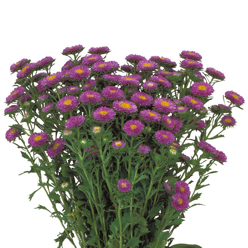 Квітки айстри Мацумото мають чіткі жовті центри.