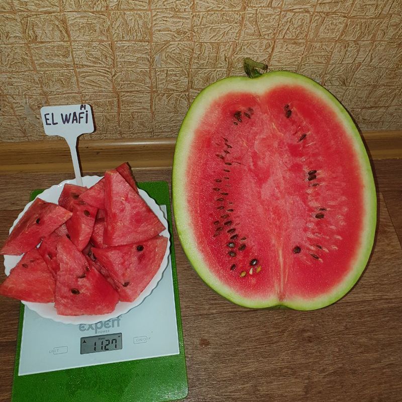 Характеристика плода – Плоди овальні, світло-зеленого кольору, вагою 8-11 кг. М'якоть соковита, досить щільна, насичено-червоного кольору, з низьким вмістом волокон та стабільно високим вмістом цукру, дуже ароматна.