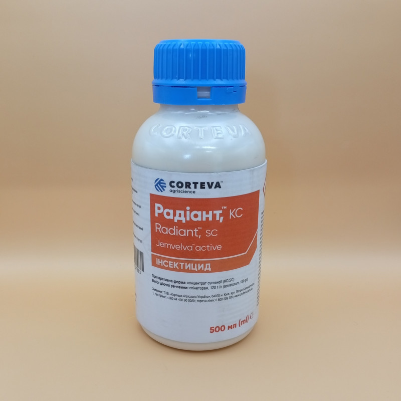 Інсектицид Радіант – це новий інсектицид, створений на основі інноваційної молекули, що зареєстрована під торговою назвою Jemvelva active (д.р. спінеторам). Нова молекула характеризується унікальним спектром дії, швидким нокдаун-ефектом та тривалим періодом захисту польових і плодоовочевих культур.