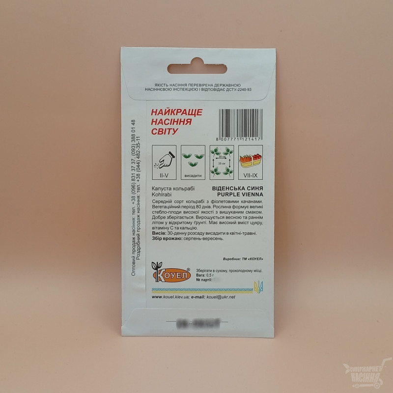 Насіння капусти кольрабі Віденська синя (Hortus) може бути в двох видах упаковки: