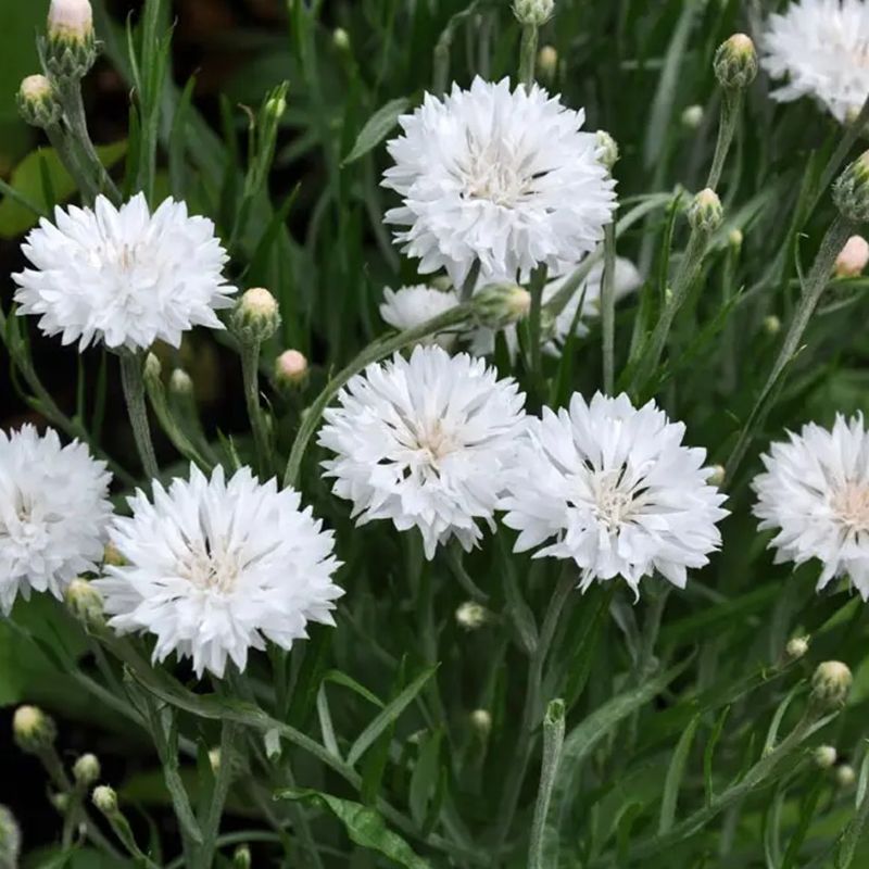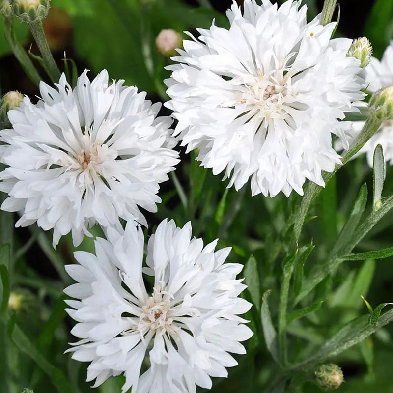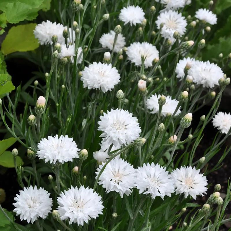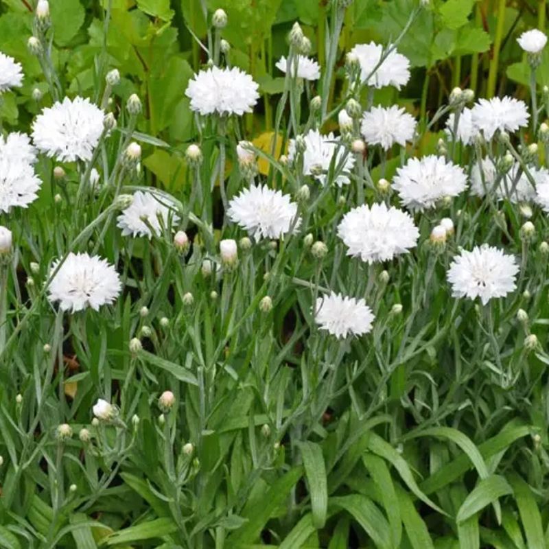 Волошка Том Пауз біла (white) махрова – компактна серія з махровими квітами, яка відмінно підходить для бордюрів, ящиків та букетів.