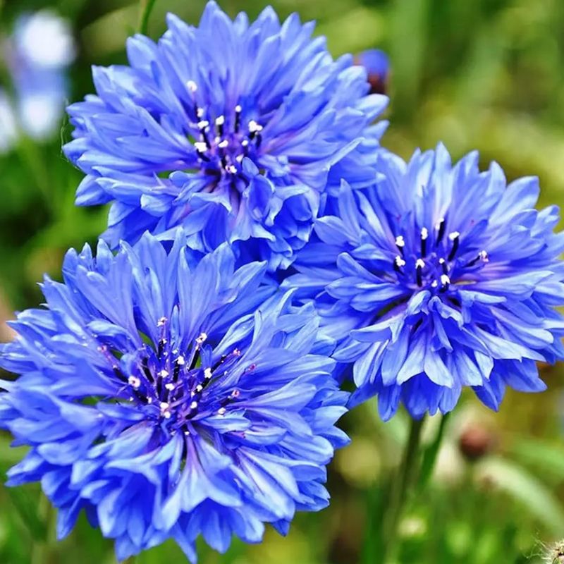 Волошка Том Пауз синя (blue) махрова – компактна серія з махровими квітами, яка відмінно підходить для бордюрів, ящиків та букетів.
