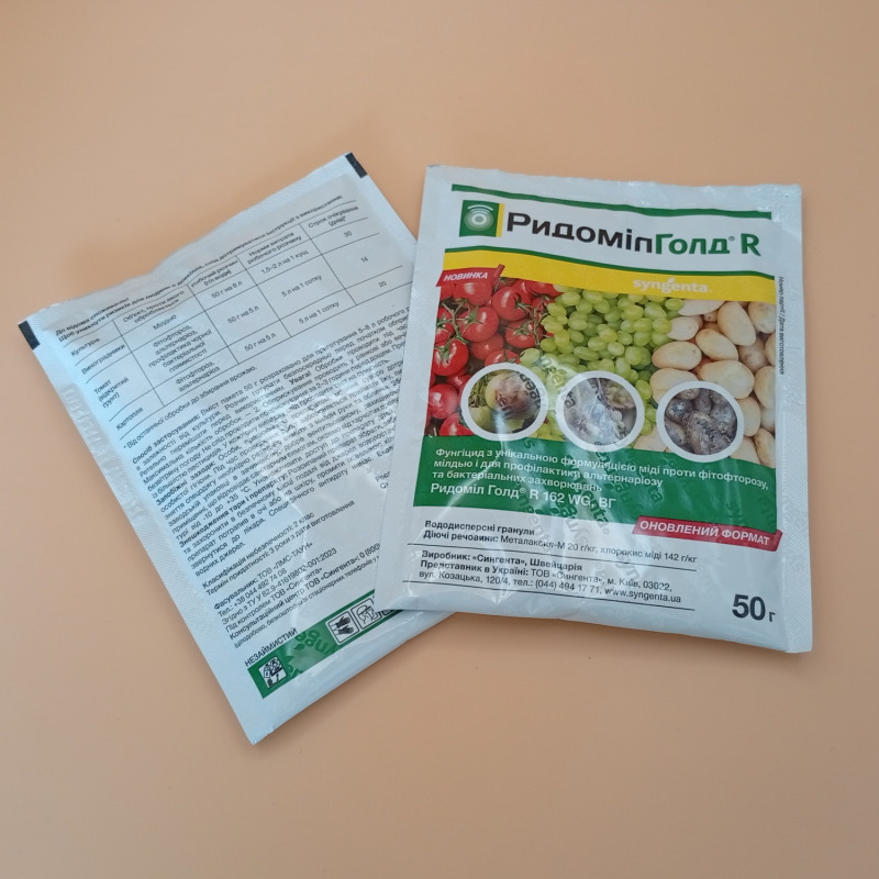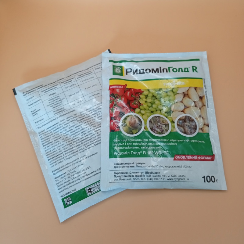 Рекомендується використовувати Ридоміл Голд R у комплексній системі захисту з фунгіцидами, наприклад із Квадріс, Ревус Топ.