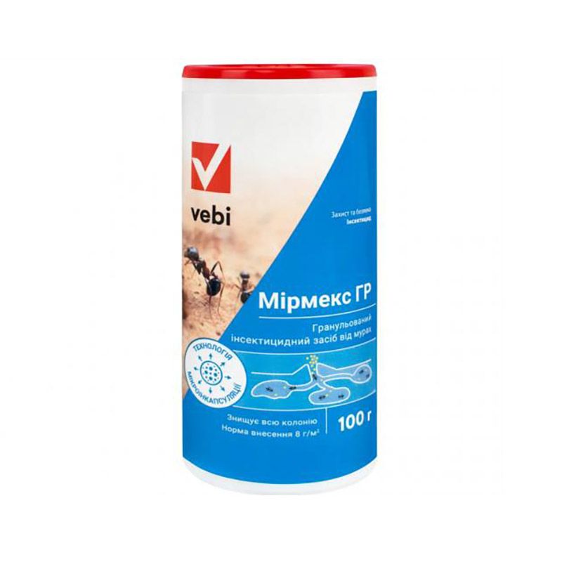 Інсектицид Мірмекс – це приманка, готова до застосування, виготовлена у формі гранул, застосовується для знищення всіх видів мурах всередині приміщень, а також поблизу об'єктів різних категорій: комунально-побутових об'єктів, організацій громадського харчування, підприємств харчової промисловості (школи, лікарні, кінотеатри, магазини, казарми, готелі, кафе, столові), а також приміщень для утримання тварин (доїльні зали, стійла, притулки, розплідники, ферми).