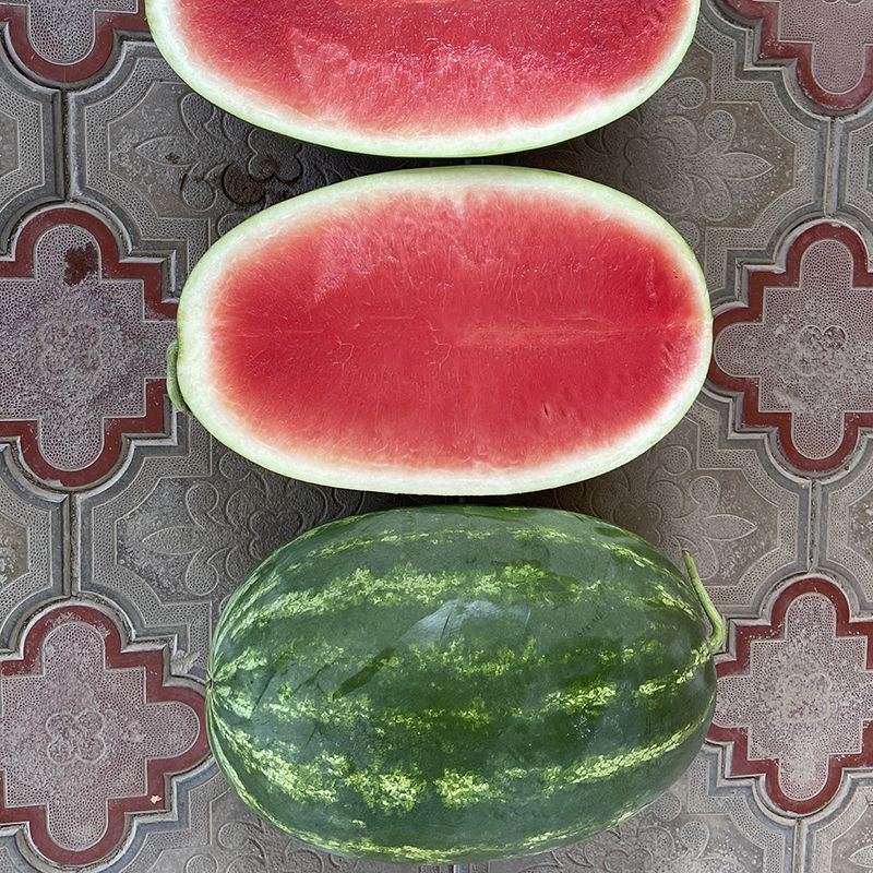 Характеристика плодів – Вирівняні плоди подовжено-овальної форми, привабливого кольору, відразу звертають на себе увагу. Великі плоди вагою 12-16 кг. Солодкий та хрумкий, однорідний червоний колір м'якушу, без порожнин та прожилок, дрібне насіння. Брікс – 12-13%. Середнього розміру стінка.