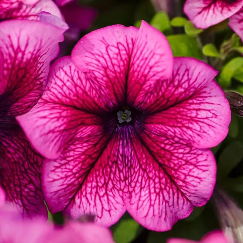 Петунія грандіфлора Ігл F1 сливова з прожилками (Petunia grandiflora Eagle Plum vein F1) – дуже ранньоквітуча крупноквіткова петунія з рівномірним квітковим вікном і акуратним компактним розміром.