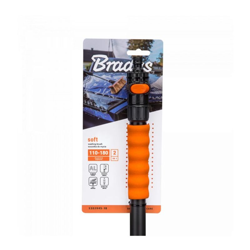 Щітка для миття телескопічна SOFT із клапаном 110-180 см, ESS1945-18 – це м'яка щітка, що ідеально підходить для миття легкових авто, мікроавтобусів та вантажівок. Також вона стане у пригоді для роботи в будинку та саду, на веранді та в теплиці.