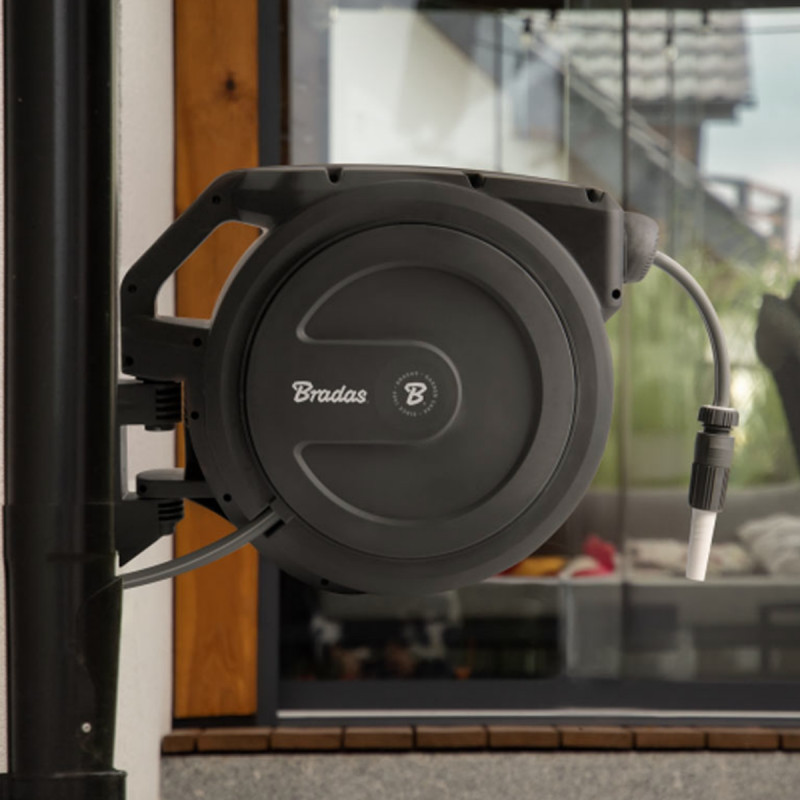 Котушка має систему м'якого сповільнення змотування шланга та блокування розмотування на обраній довжині.