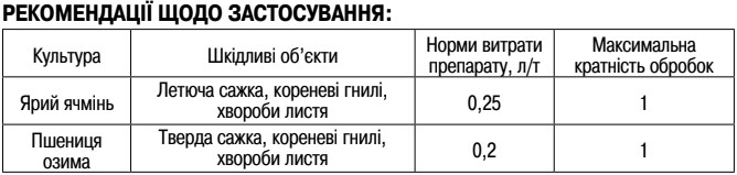 Призначення: Протруйник насіння, системний низькотоксичний фунгіцид для боротьби з хворобами ярого ячменю та озимої пшениці.