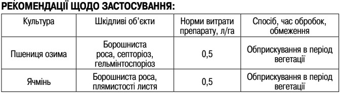 Призначення: Універсальний фунгіцид для захисту сільськогосподарських культур в період вегетації.