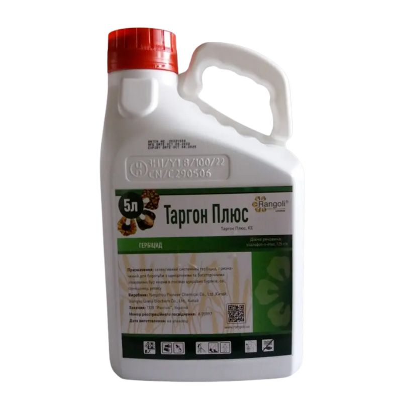 Таргон Плюс – високоефективний післясходовий гербіцид системної дії для знищення однорічних та багаторічних злакових бур’янів, в тому числі пирію повзучого, свинорию – у посівах багатьох сільськогосподарських культур.