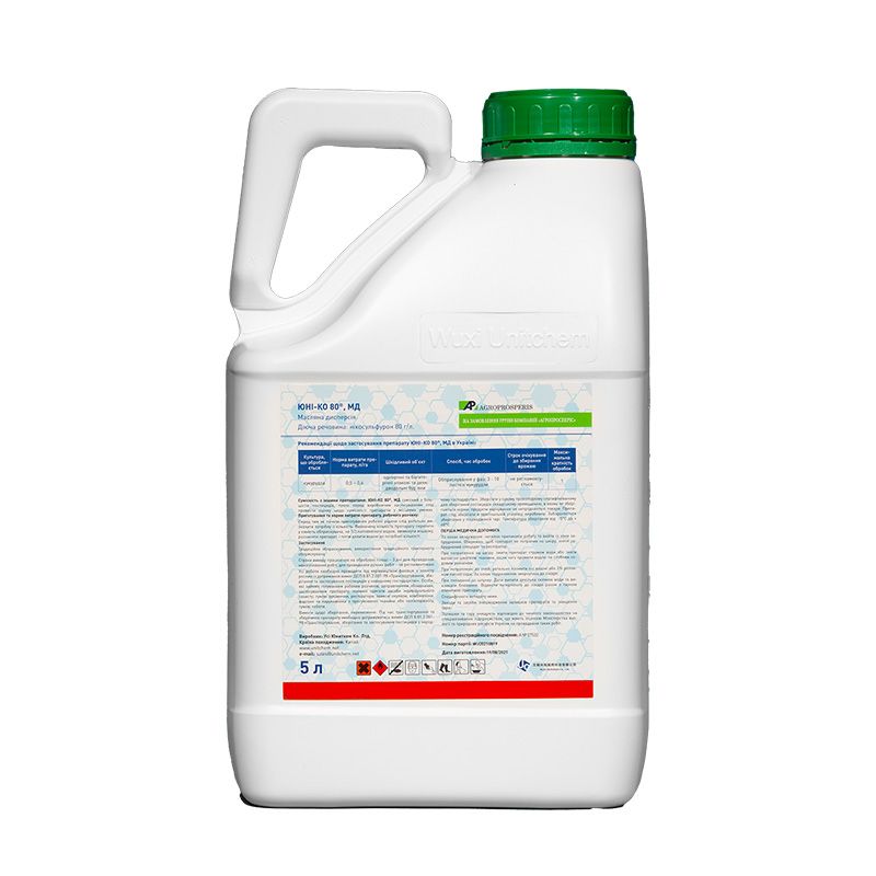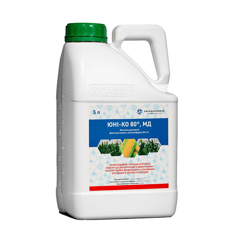 ЮНІ‑КО знищує чутливі бур’яни, які зійшли до моменту обробки та має ґрунтову дію на злакові бур’яни: