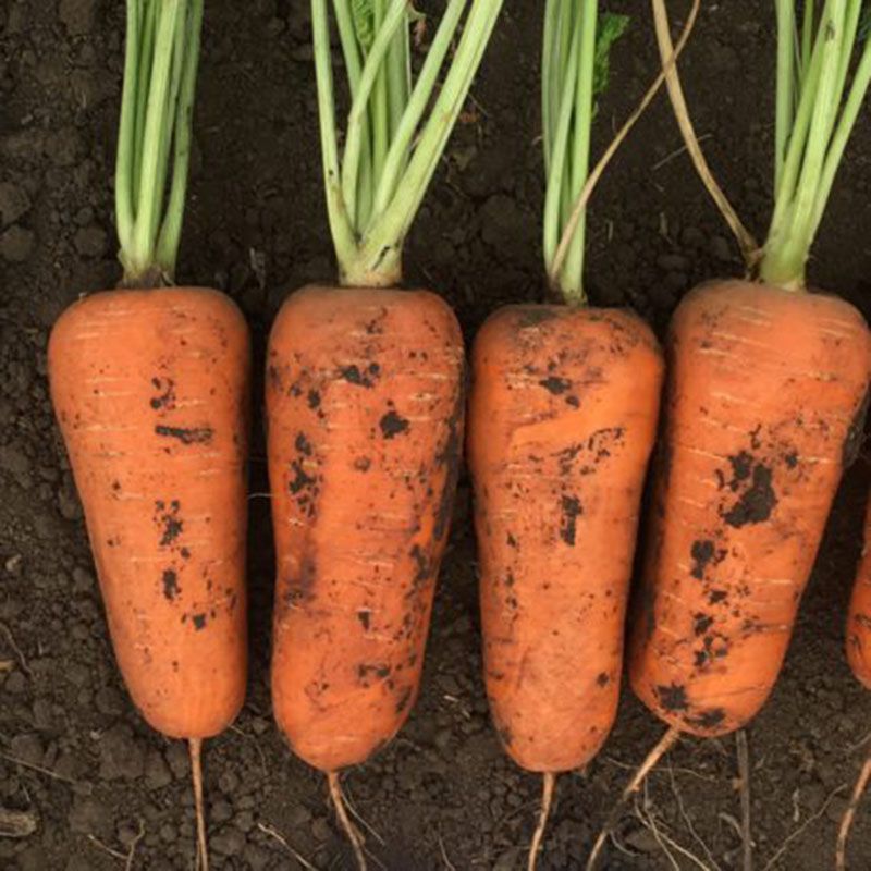 Характеристики плодів – Коренеплід конічної форми з тупим кінцем, довжиною 14-16 см і діаметром 4-5 см. Має привабливий помаранчевий колір і дуже гладку поверхню. Дуже смачна та соковита морква.