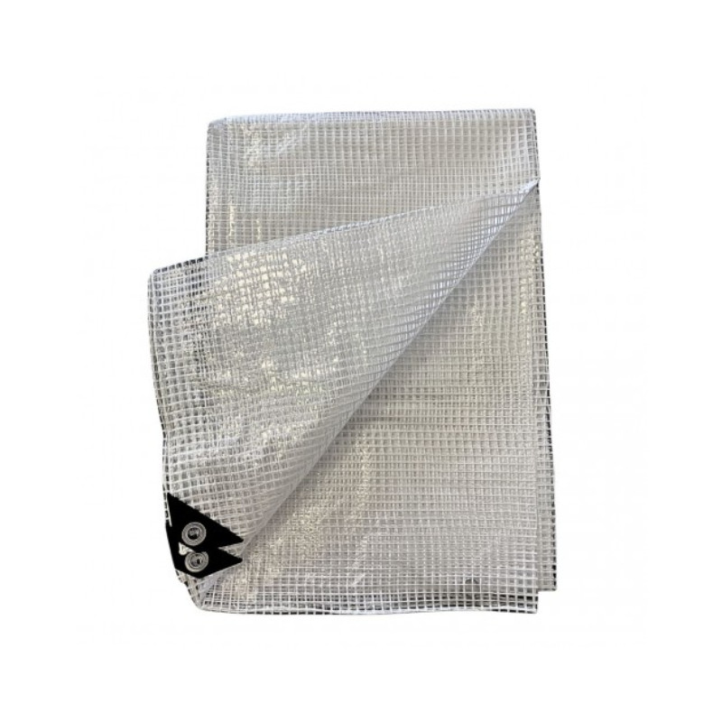 Тент виготовлений з прозорого поліпропілену, армованого решіткою з білих стрічок.