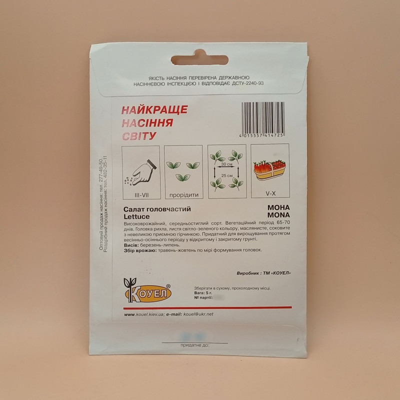 Насіння салату Мона можуть бути в двох видах упаковки: