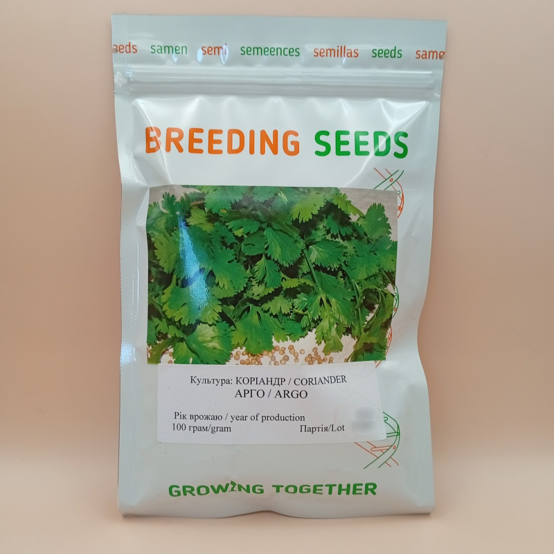 Кінза сорту Argo, вироблена компанією Breeding Seeds (Італія), є високоврожайним, середньостиглим однорічником.