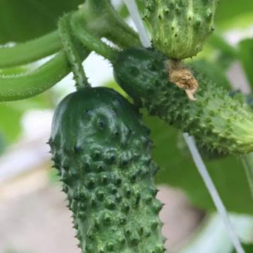 Циліндричний, чорношипий зелені огірки зі світлими розмитими смугами.