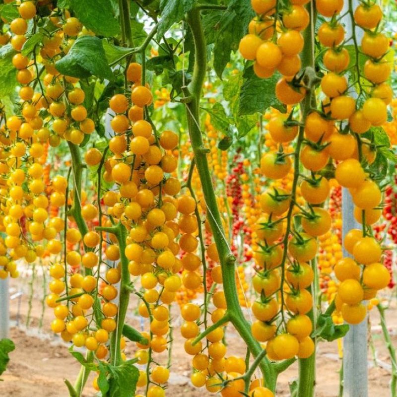 Жовтий індетермінантний томат черрі для одноплідного або китицевого збору.