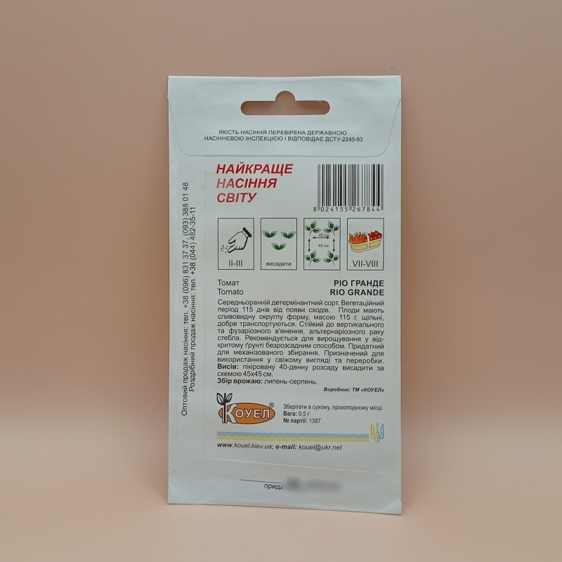Насіння томату Ріо Гранде (Hortus) можуть бути в двох видах упаковки: