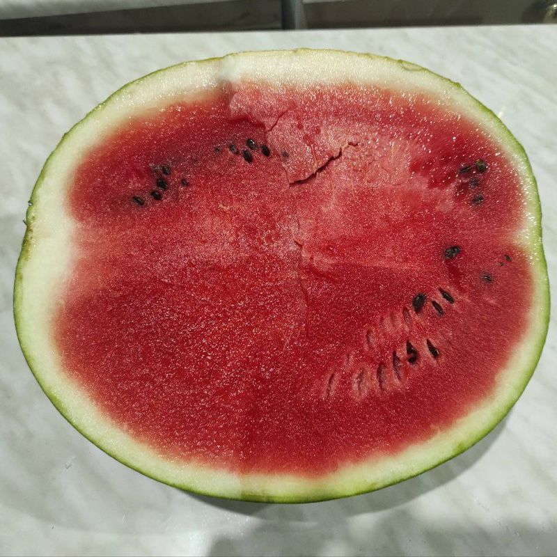Насіння крупне, м'якуш насичено червоний, структура хрустка, соковита.