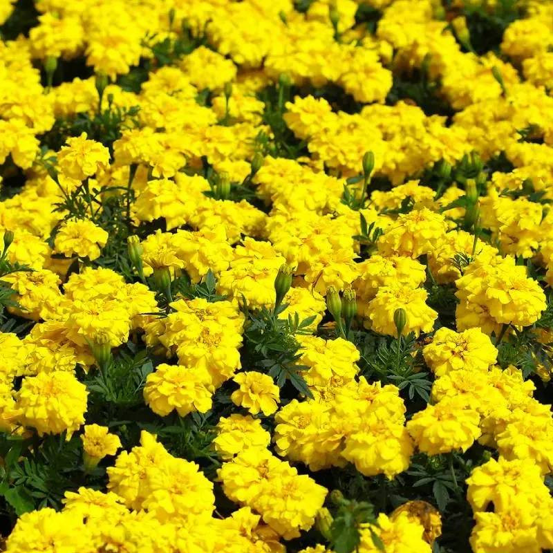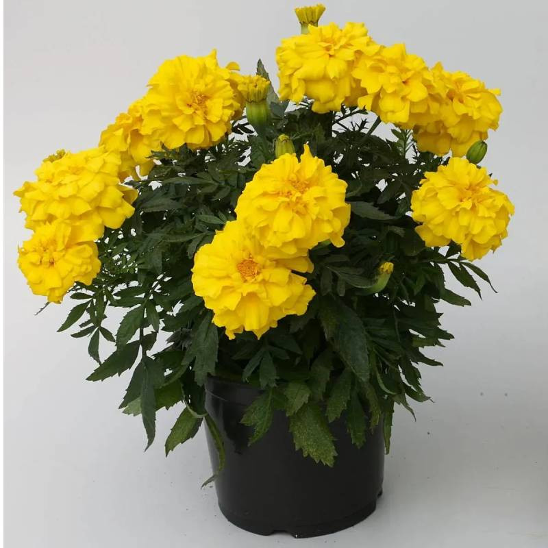 Чорнобривці Зеніт F1 bright yellow — сонячний гібрид, що вражає яскраво-жовтими квітами, які створюють відчуття тепла та оптимізму у квітниках і міських насадженнях.