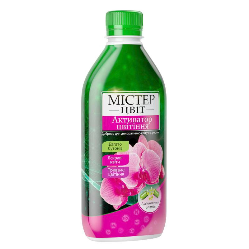 Добриво «Містер Цвіт» Активатор цвітіння — спеціалізований комплексний засіб для стимуляції бутонізації та підтримки активного, тривалого цвітіння декоративних рослин. Завдяки збалансованому вмісту фосфору і калію, мікроелементів у хелатній формі, амінокислот і вітамінів, добриво сприяє формуванню більшої кількості бутонів, посиленню яскравості забарвлення квітів і підвищенню стійкості рослин до несприятливих умов.