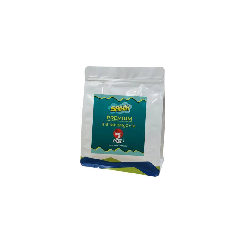 Завдяки високому вмісту калію (40%) Saikin Premium 8-5-40+2MgO+МЕ+EAV стимулює транспортування цукрів та вуглеводів у плоди, посилює накопичення сухої речовини, підвищує стійкість до посухи й температурних стресів. Магній забезпечує активний фотосинтез, покращуючи утворення хлорофілу. Мікроелементи у хелатній формі EDTA сприяють швидкому засвоєнню поживних речовин, навіть за несприятливих умов вирощування. Добриво не містить хлору, що робить його безпечним для чутливих культур.