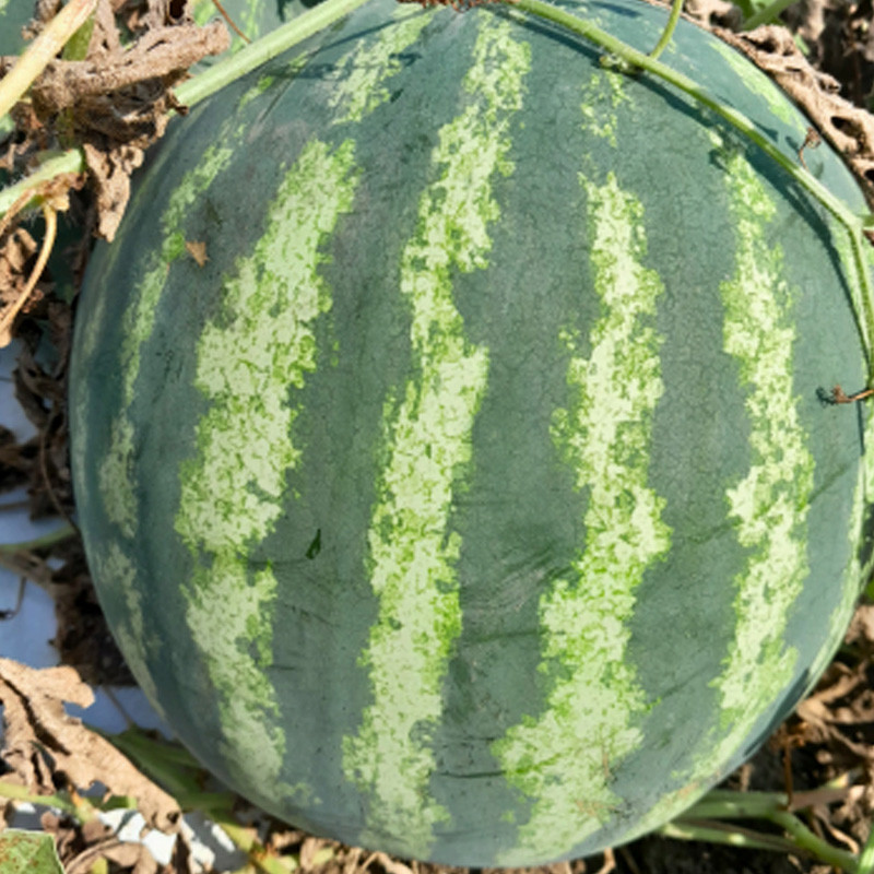 Характеристика плодів – округлої форми, масою 5-7 кг з темно-зеленими смугами і яскраво-червоною м’якоттю. Brix 12%.