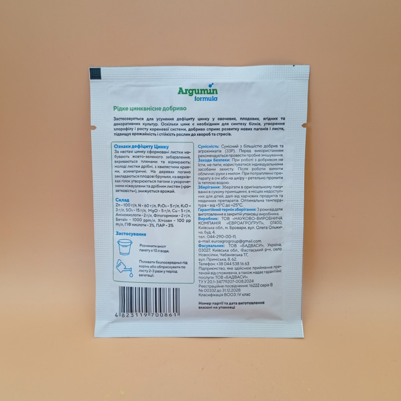 Аргумін Формула Цинк — рідке цинквмісне добриво для кореневого та листового живлення: