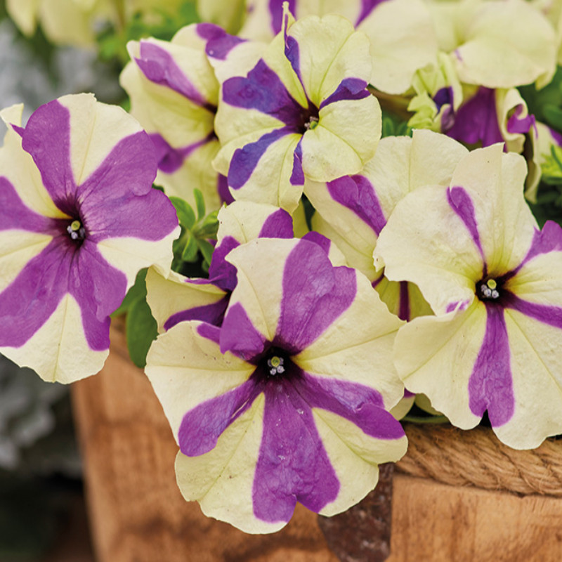 Справжній колірний прорив серед генетично компактних гібридних петуній. Ця нова серія Shake F1 поєднує в собі унікальне забарвлення квіток з добре відомою генетично компактною петунією і швидкістю цвітіння.