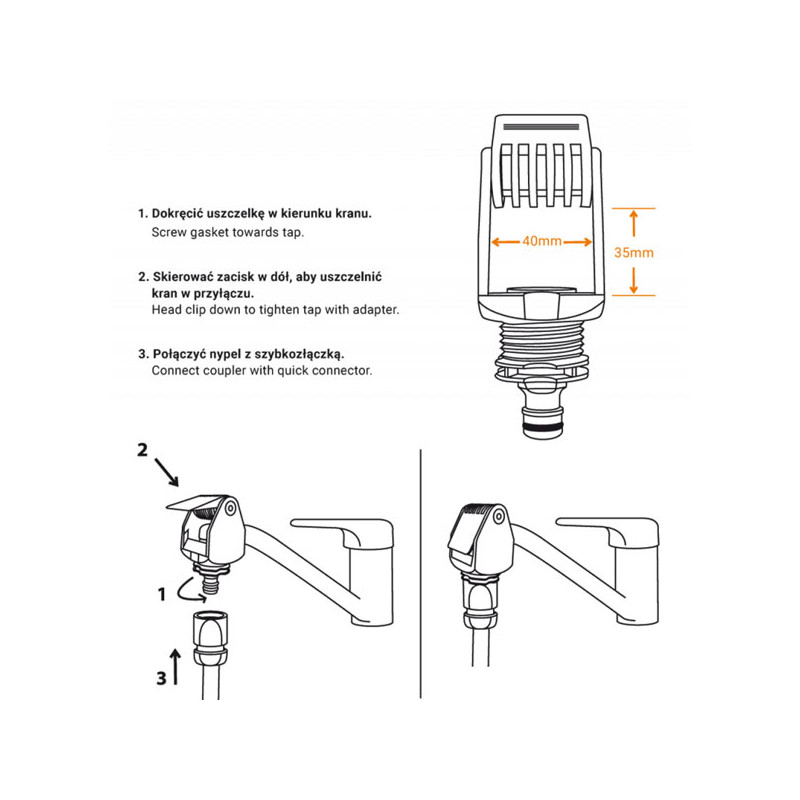 Універсальний адаптер BLACK LINE ECO-4124 призначений для швидкого та надійного підключення до системи водопостачання. Встановлюється на стандартний водопровідний кран за допомогою зручного фіксуючого затискача. Ідеальне рішення для тих, хто хоче легко під'єднати поливальний шланг або інший пристрій без спеціального інструменту.