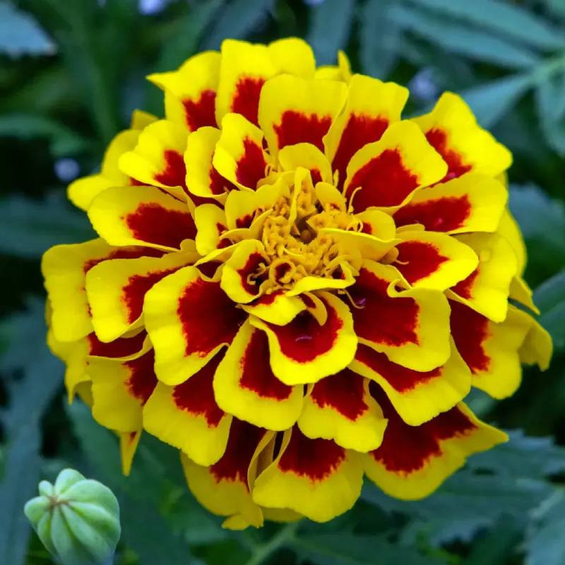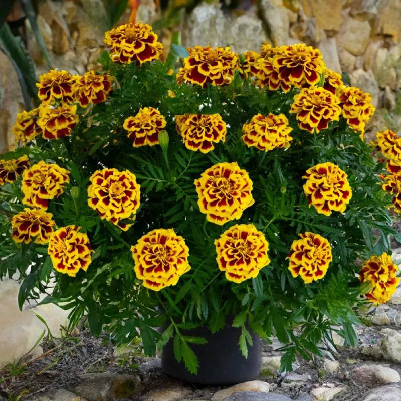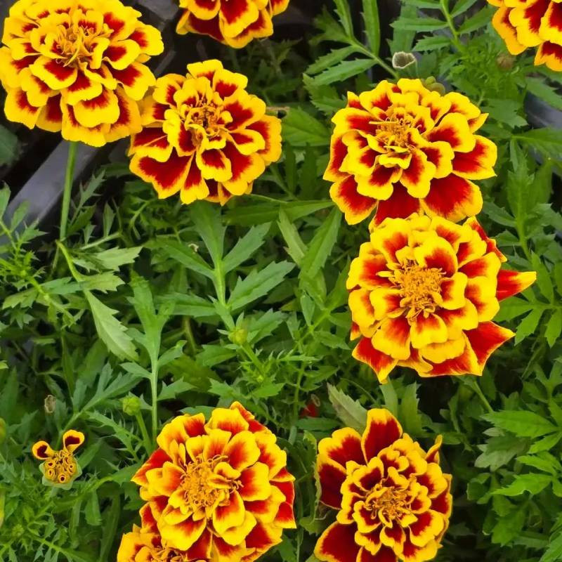 Чорнобривці розлогі Манго Танго (Tagetes patula Mango Tango) — яскравий сорт французьких чорнобривців з виразними двоколірними квітами, що поєднують насичено-червоний та сонячно-жовтий відтінки.
