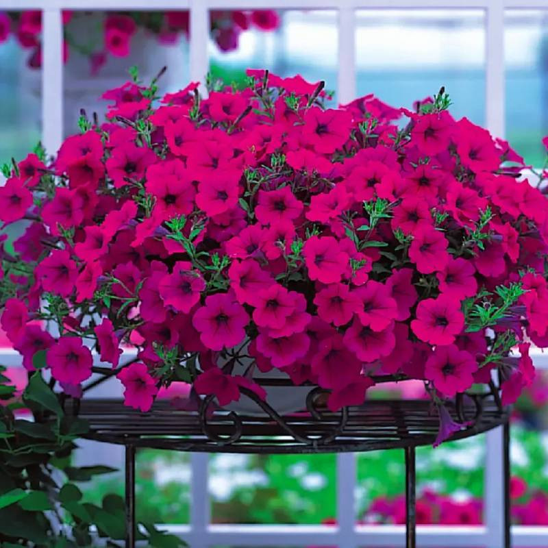 Петунія ампельна Опера Супрім F1 (Petunia hybrida Opera Supreme F1) колір Purple – розкішна квітка з глибоким фіолетовим відтінком, що вражає насиченістю кольору та тривалістю цвітіння. Ідеальний гібрид для створення виразних композицій у підвісних кашпо та клумбах.