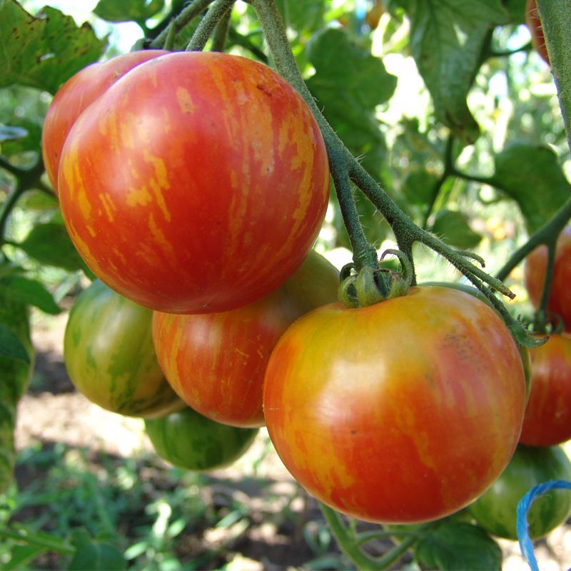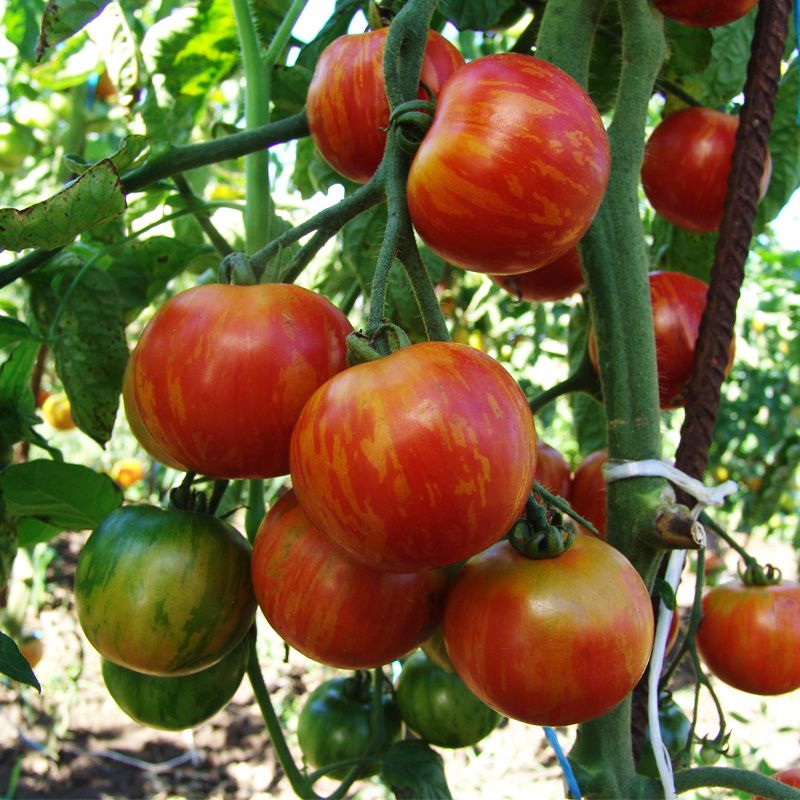 Даний томат є середньораннім, високорослим. Плоди дрібні, діаметр в середньому 4 см. Незвичайне забарвлення - червоний плід в жовтих смугах. На однієї кисті росте до 25 плодів, вагою 1-1,2 кг.