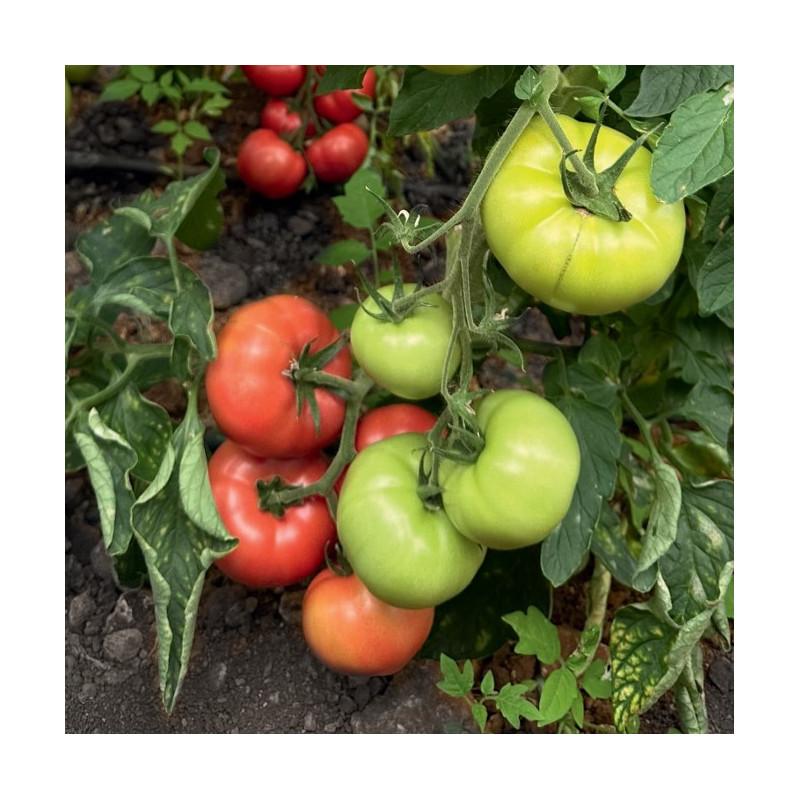 Плоди яскраво-рожевого насиченого кольору. У перших китицях маса томатів може досягати приблизно 500 г.