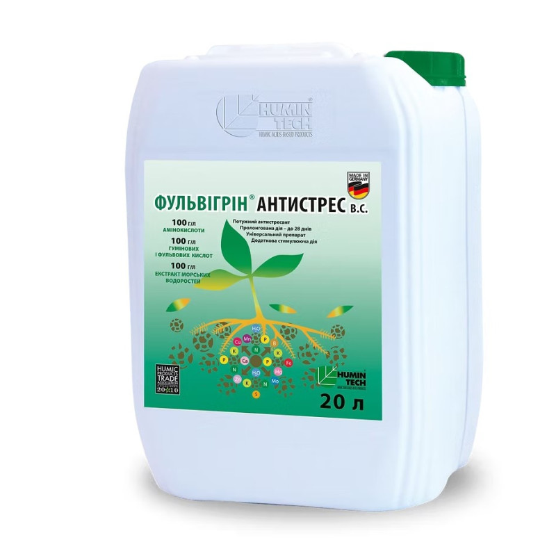 Фульвігрін Антистрес антистресант добриво Humintech — це антистресант із трьома активними складовими.