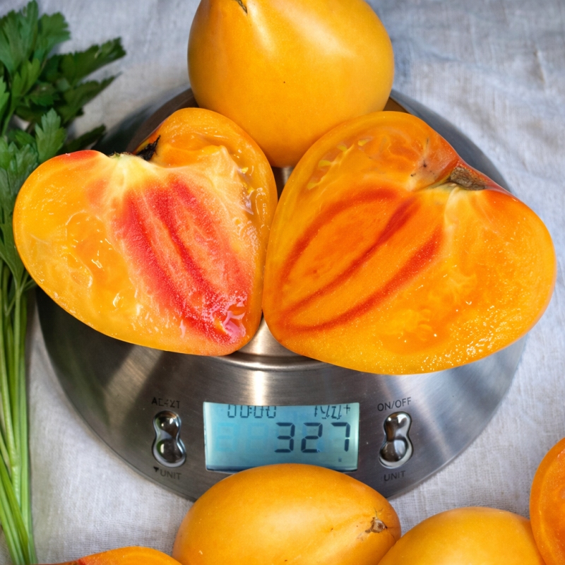 М'якоть плодів м'ясиста й ніжна, лимонно-жовтого кольору з плавним переходом у червоний, що надає томатам екзотичний і дуже привабливий вигляд у розрізі.