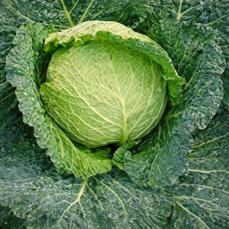 Листя насиченого темно-зеленого кольору з характерною гофрованою текстурою, типовою для савойського виду.